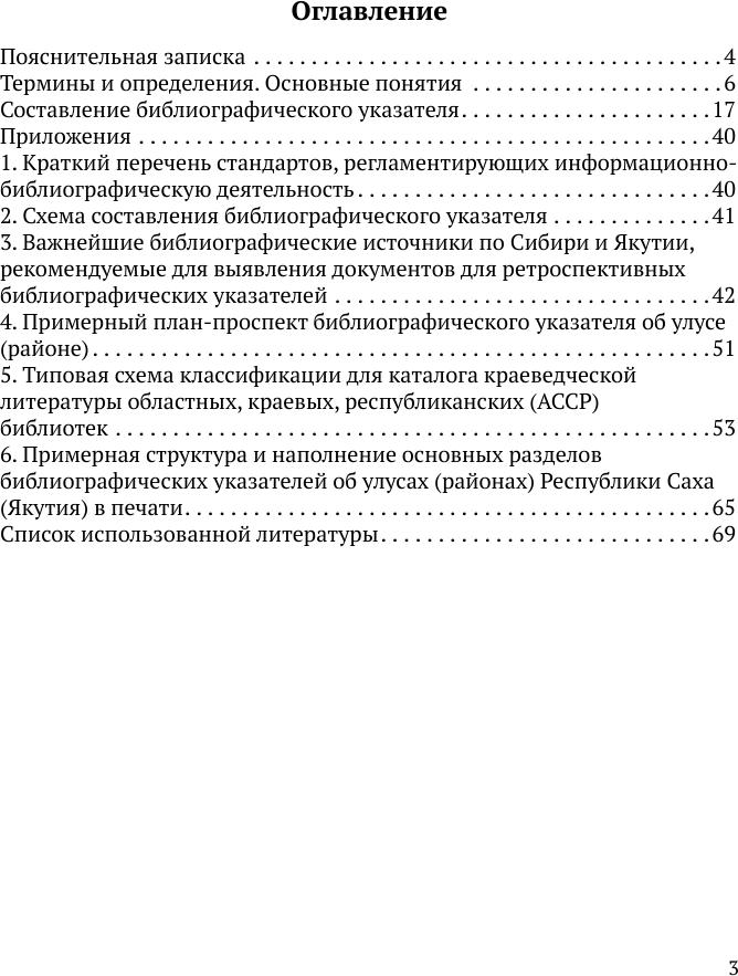 Сборник представляет собой методические рекомендации по составлению ретроспективного библиографического указателя о районе (улусе), городе, наслеге РС(Я). В него включены также краткий перечень стандартов, регламентирующих информационно-библиографическую деятельность, примерный план-проспект библиографического указателя об улусе (районе) и др. материалы. Методические рекомендации адресованы составителям библиографических указателей основной литературы о районе (улусе), городе, наслеге