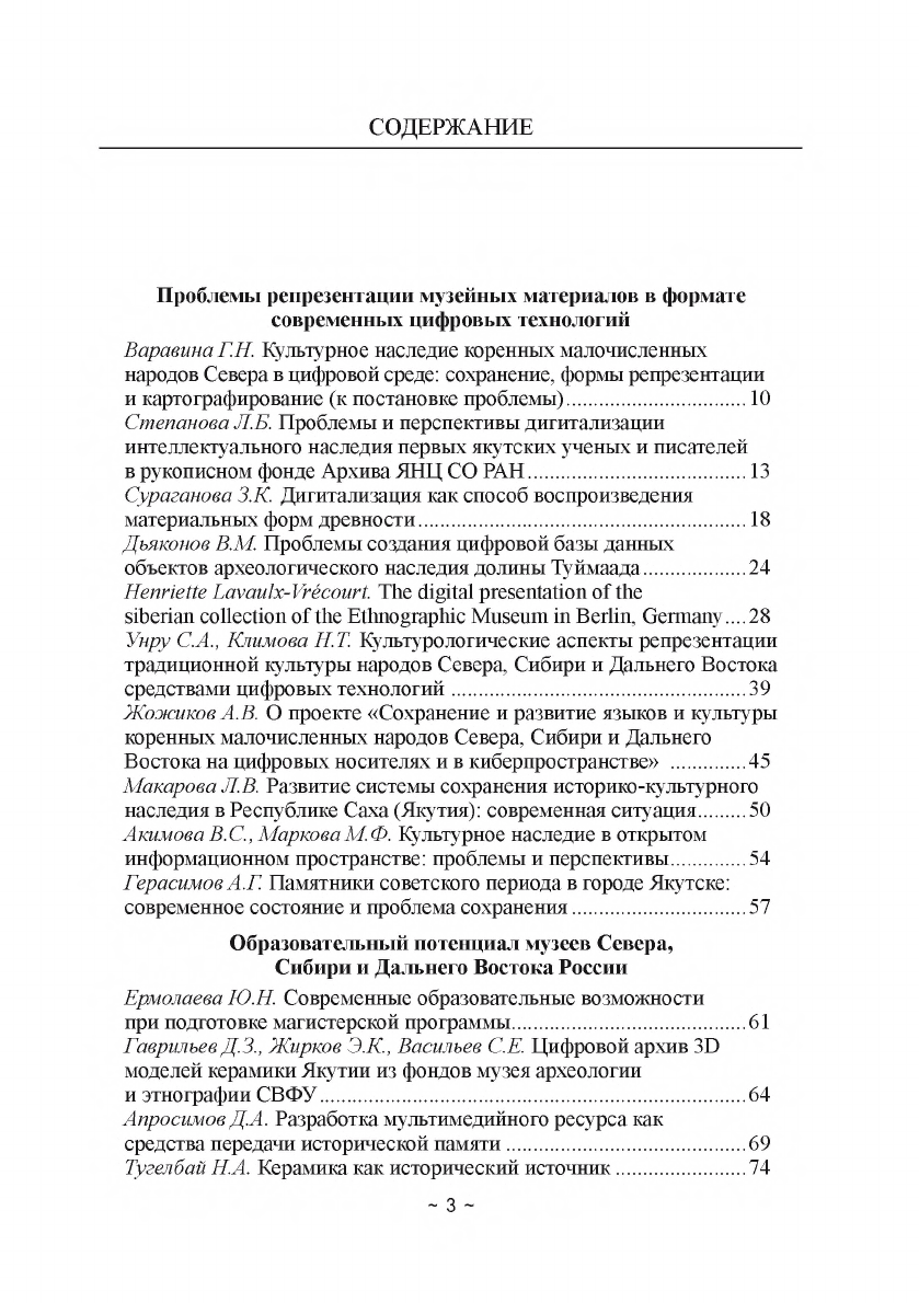 Историко-культурное наследие народов Севера, Сибири и Дальнего Востока Российской Федерации : проблемы репрезентации в формате современных цифровых технологий [Электронный ресурс] : материалы Всероссийской (с международным участием) научно-практической конференции "Историко-культурное наследие народов Севера, Сибири и Дальнего Востока Российской Федерации: проблемы репрезентации в формате современных цифровых технологий" : (г. Якутск, 30 мая — 1 июня 2019 г.) / редакционная коллегия: кандидат исторических наук Н. А. Стручкова, доктор исторических наук Е. Н. Романова, кандидат исторических наук Ю. Н. Ермолаева ; ответственный редактор доктор исторических наук А. И. Гоголев. - Электрон. дан. (1 файл: 9,35 Мб). - Якутск : Электронное издательство НБ РС(Я), 2019. - 231, [1] с.