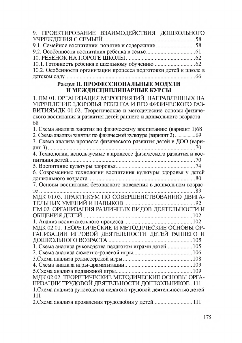 Учебное пособие разработано в соответствии с ФГОС СПО для группы специальностей 440201 Дошкольное образование и 440204 Специальное дошкольное образование (форма обучения-очная и заочная). Учебное пособие предназначено для учебной и производственной практики. Пособие разработано с целью формирования нормативно-правовой и профессионально образовательной компетентности будущих специалистов, практических умений создания педагогических условий для образовательного процесса в дошкольных образовательных организациях. В пособии включены тестовые задания, схемы анализа разнообразных форм, методов и средств педагогической деятельности воспитателя детей дошкольного возраста