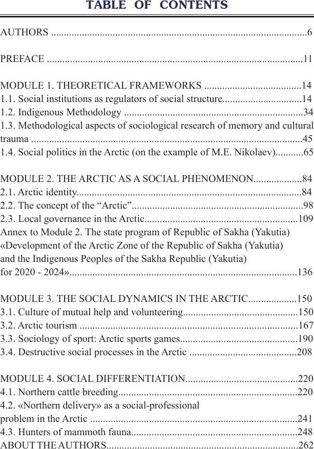 Социальные процессы в Арктике : учебное пособие для вузов : учебно-методическое пособие для студентов и преподавателей гуманитарных факультетов вузов / [В. Е. Охлопков, У. А. Винокурова, А. Е. Местникова и др.] ; под общей редакцией У. А. Винокуровой ; научные редакторы: А. Е. Местникова, А. В. Михайлова ; Министерство спорта Российской Федерации, Чурапчинский государственный институт физической культуры и спорта, Кафедра социокультурных инноваций и технологий. - Электрон. дан. - Якутск : СРИД НИЦ НБ РС(Я), 2020- . Вып. 1. - Электрон. дан. (1 файл: 6,49 Мб). - 2020. - 277 с.
