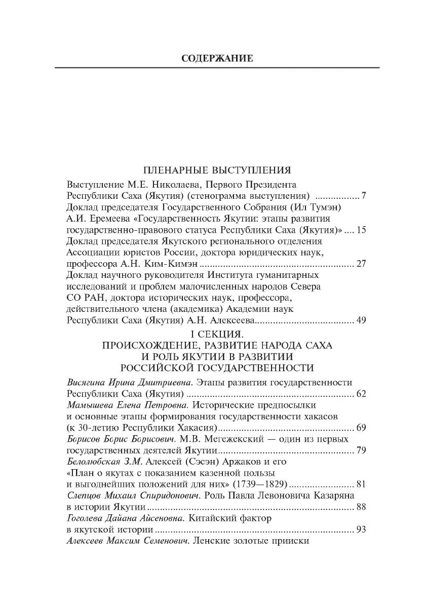 Происхождение народа саха и развитие государственности Якутии в составе России : материалы научно-практической конференции с международным участием (г. Якутск, 27 сентября 2021 г.) / Государственное Собрание (Ил Тумэн) Республики Саха (Якутия), Конституционный совет Республики Саха (Якутия), ГБУ "Академия наук Республики Саха (Якутия)", ГКУ РС(Я) "Национальная библиотека Республики Саха (Якутия)", "Николаев-Центр", ФГАОУ ВО "Северо-Восточный федеральный университет им. М. К. Аммосова", Якутское региональное отделение Общероссийской общественной организации "Ассоциация юристов России", ГБУ РС(Я) "Якутский государственный объединенный музей истории и культуры народов Севера им. Ем. Ярославского", Институт гуманитарных исследований и проблем малочисленных народов Севера Сибирского отделения Российской академии наук ; под общей редакцией Ю. И. Семенова ; [автор предисловия А. С. Николаев]. - Якутск : ИЦ НБ РС(Я), 2022. - 1 файл (208 с. ; 2,07 Мб) : портр. - (Серия "Электронные издания Национальной библиотеки Республики Саха (Якутия)").