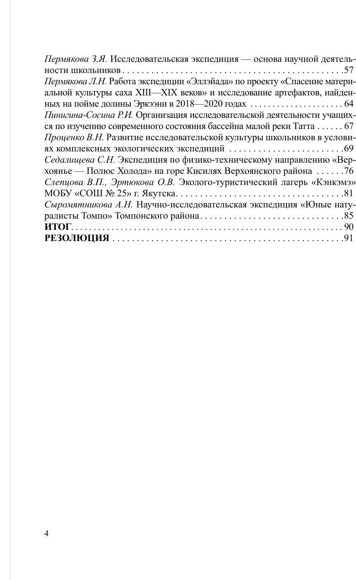 В сборник включены выступления научных руководителей научно-исследовательских экспедиций школьников и статьи учителей-организаторов школьных экспедиций в Республике Саха (Якутия). Статьи печатаются в авторской редакции