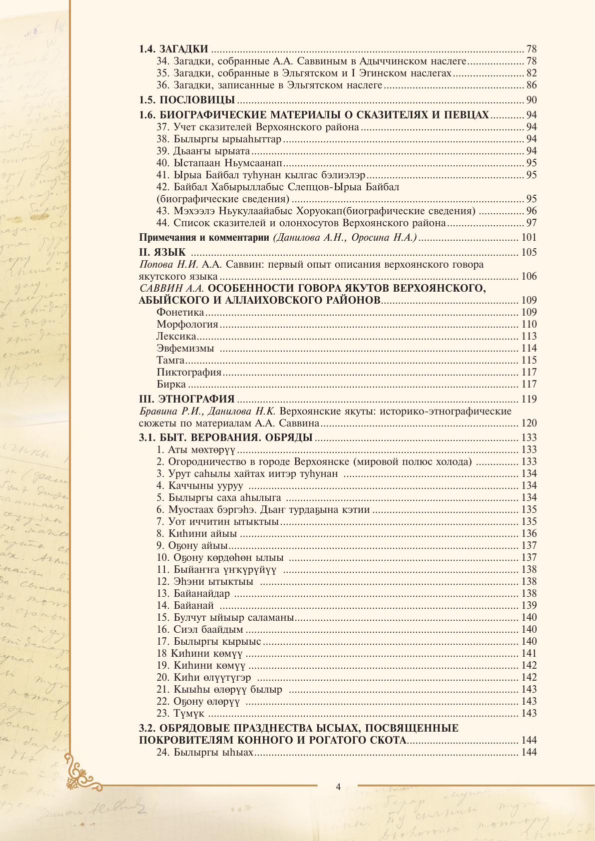 Верхоянские якуты: материалы Северной экспедиции А. А. Саввина (1939—1940 гг.) / Федеральное государственное бюджетное учреждение науки Федеральный исследовательский центр "Якутский научный центр СО РАН", Институт гуманитарных исследований и проблем малочисленных народов Севера Сибирского отделения Российской академии наук, Муниципальное образование "Верхоянский район" Республики Саха (Якутия), Муниципальное казенное учреждение "Управление культуры" муниципального образования "Верхоянский район" Республики Саха (Якутия) ; составитель Н. К. Данилова ; ответственный редактор Н. И. Попова ; редакторская коллегия: Р. И. Бравина, Н. И. Данилова, Н. В. Покатилова [и др.] ; литературный редактор Н. И. Дегтярева ; рецензенты: Е. Н. Романова, В. С. Никифорова ; [вступительная статья Чириков Г. И.]. - Якутск : НБ РС (Я), 2022. - 1 файл (233 с. ; 21,6 Мб) : ил., факс.