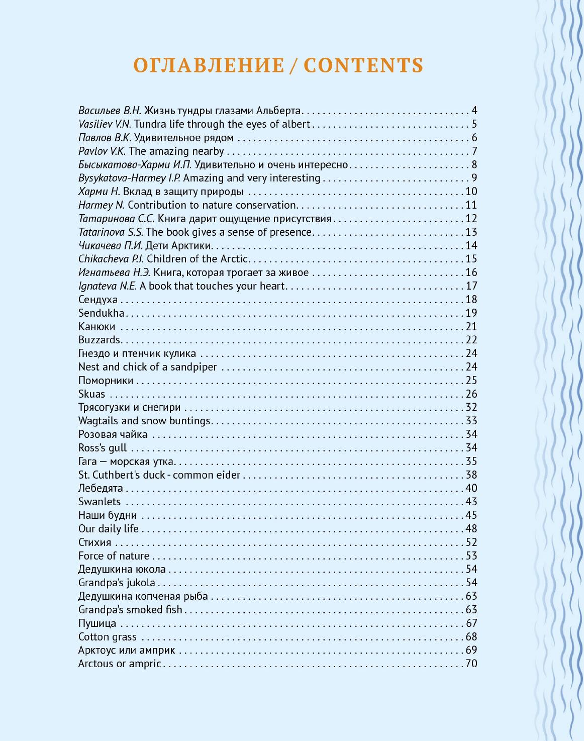 Автор книги - ученик 10 класса Чокурдахской средней общеобразовательной школы им. А. Г. Чикачева Альберт Ищук. В альбом вошли очерки и фотографии его орнитологических, летних заметок и наблюдений в тундре, с пояснениями обозначений предметов, мест, рецептов коренного населения села Русское Устье, являющегося одним из древнейших групп русского народа в Сибири