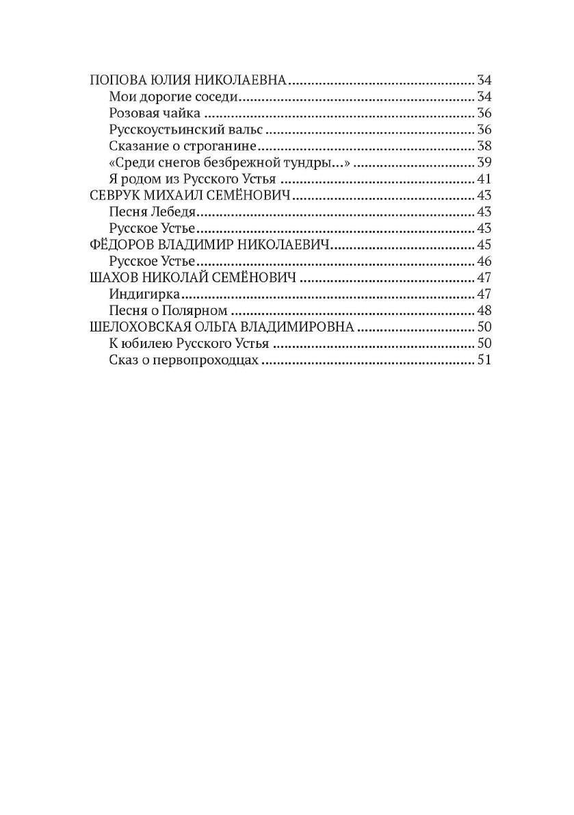 О Русском Устье написано огромное количество статей, снято с десяток фильмов, написано немало книг. Феномен Русского Устья понять сложно, если не знать о нескольких бытующих версиях появления русских на этой суровой земле. Кто они? Смелые поморы, которые с незапамятных времен совершали дальние плавания по Ледовитому морю? Или служивые люди из казачьих отрядов? Главное то, что спустя несколько столетий русскоустьинцы сохраняют фольклор, патриархальный уклад жизни, стараются прививать любовь к родным местам подрастающему поколению. Об этом и пишут в своих стихах наши авторы в данной книге. Сборник издаётся к 385-летию села Русское Устье, исполняющееся в этом году